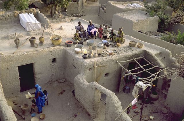 Сім'я, яка живе в двох глинобитних будинках. Малі
