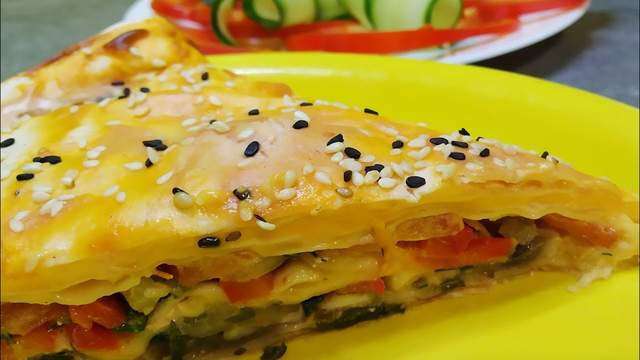 - Для соусу змішати сметану з майонезом. Пиріг можна пекти круглий в формі для кексу або викласти його просто на деко.