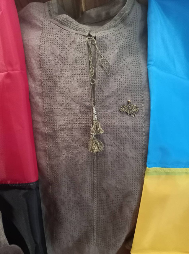 Це вже була моя ініціатива. Я часом волонтерю з фондом "Руєвит". Якось на майдані вони плели сітки і збирали кошти на потреби ЗСУ. І з ними був військовий на інвалідному візку після поранення. Я підійшла поспілкуватися і подякувати за те, що боронить нас, а він почав говорити по-російськи. Я здивувалася з того вголос. Він виглядав спантеличеним. Але ми розговорилися. Зрештою, я допомогла дістатися захиснику назад в лікарню. Виявилося, що чоловік родом із Кривого Рогу. Коли військовий дізнався, що вишиваю сорочки, захотів і собі. Але я відповіла, що москалям не вишиваю. І він не сприйняв це у штики, а навпаки дуже старався розмовляти українською. Ось йому я й вишила сорочку з синьо-жовтим візерунком на білому полотні".