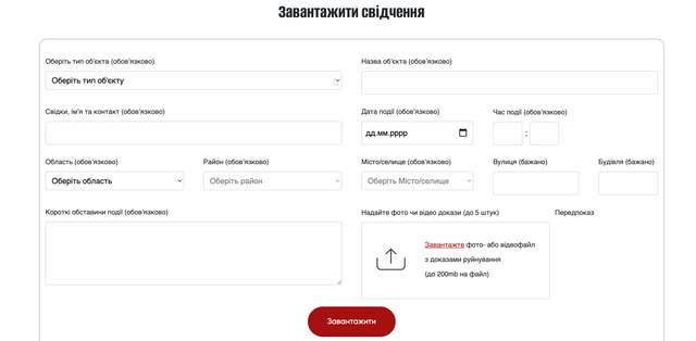 3. Завантажте фото до та після руйнування, на яких чітко видно об'єкт (файл не повинен займати більш як 200 Мегабайтів).