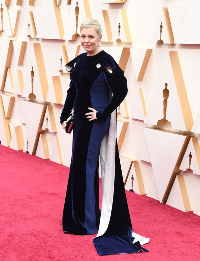 Акторка і лауреатка Оскару Олівія Колман обрала чорний оксамит і трохи запізнилася щодо світових тенденцій моди.