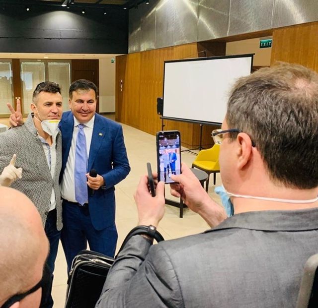 При цьому на фотографіях з депутатами від фракції, які Саакашвілі розмістив на своїй сторінці в Facebook пізніше, значок уже в правильному положенні. Нагадаємо, напередодні Міхеіл Саакашвілі заявив про пропозицію президента Володимира Зеленського стати парламентером з МВФ.
