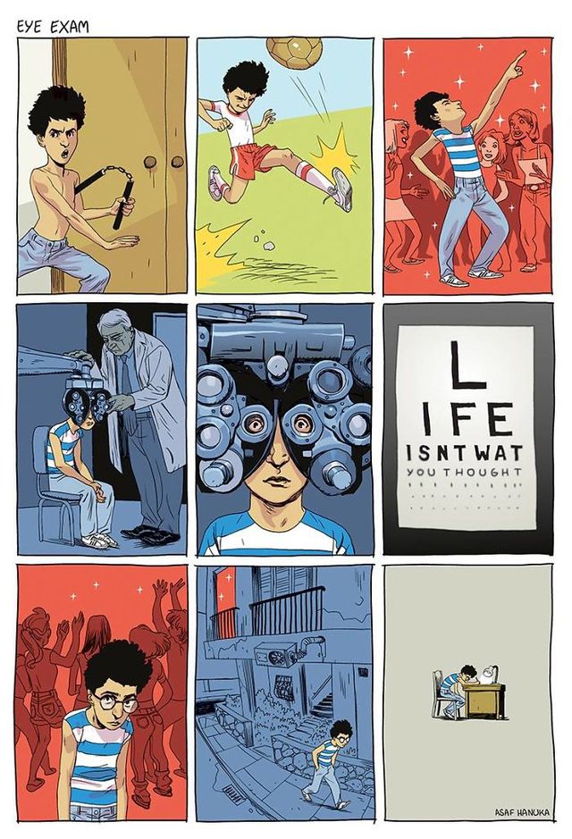 Знайомтесь, це Асаф Ханука (Asaf Hanuka) – художник з Тель-Авіва, який прославився завдяки серії сатиричних автобіографічних коміксів. Він показує не лише, як виглядає його батьківство та життя, а й все суспільство. Він особливо загострено показує всю реальність сучасного сьогодення.