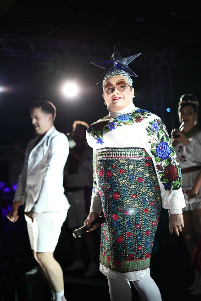 Данилко постав перед публікою в своєму класичному образі – з пишними грудьми і зі знаменитою зіркою на голові. Знаменитість виконала свої хіти: "Дольче Габана", "Dancing Lasha Tumbai", "Все буде добре".