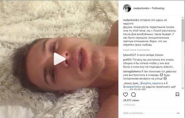 Про це на своїй сторінці в Instagram написав сам Олександр Петренко. Хлопець розмістив відвертий пост, який згодом видалив.
