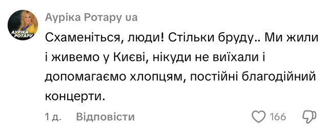 Сестра співачки, Ауріка Ротару, не залишила хейт без відповіді. Вона заявила, що їхня родина постійно допомагає військовим та весь час перебуває в Україні.