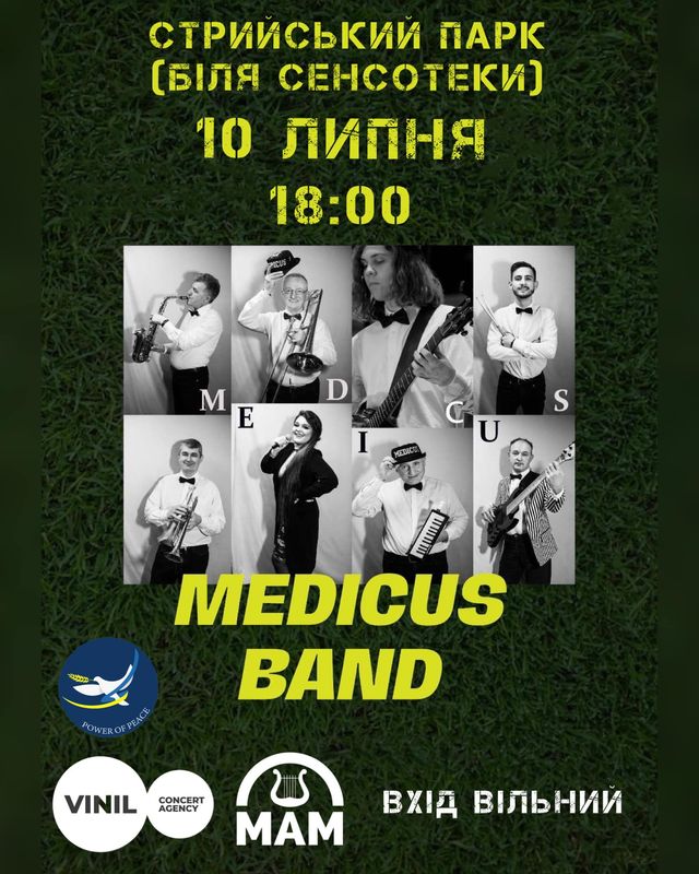 "Легендарний та іменитий, найстаріший у Львові джаз-бенд "MEDICUS" буде дарувати Вам прекрасний настрій вже в цю неділю у стрийському парку біля фонтану! Приходьте сім'ями! Буде файно! Вхід вільний!", – запрошують усіх охочих.