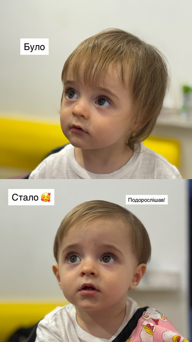 Дружина Віталія Козловського опублікувала фото "до" і "після" першої стрижки сина. На знімках можна побачити, як змінилася зачіска хлопчика.