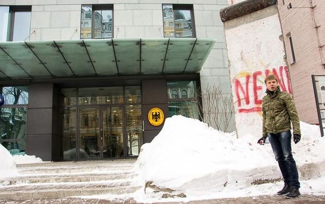 Нагадаємо, 8 лютого Гончаренко на знак протесту через висловлювання німецького посла Райхеля про те, що відсутність російських військ не є обов'язковою умовою проведення виборів на Донбасі, написав на історичному фрагмент Берлінської стіни слово "nein" ("ні").