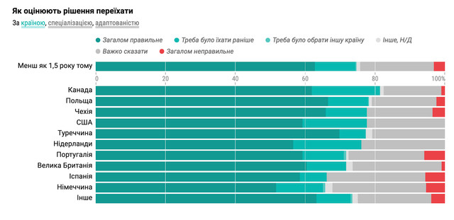 У жовтні-листопаді 2022 року видання DevOps провели опитування українських ІТ-спеціалістів, які зараз живуть за кордоном. Вони дізнались про їхню мотивацію переїхати, вибір країни, задоволеність переїздом, плани на повернення тощо.