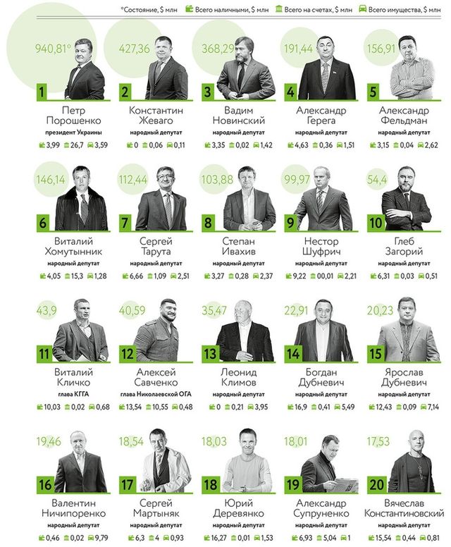 Складено рейтинг найбагатших чиновників України: інфографіка