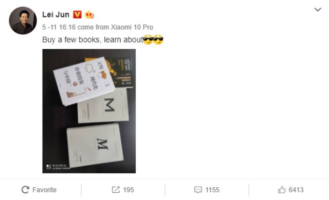 Варто відзначити, що в китайському сервісі мікроблогів є функція визначення моделі смартфона, з якого відправлялося повідомлення. Раніше така опція неодноразово дозволяла дізнатися про підготовлювані до випуску новинки, але цього разу Лей Цзюнь поділився постом, що закликає фанатів купити кілька книг, і викликав на свою адресу шквал критики. Виявилося, що засновник Xiaomi використовував для публікації гаджет Apple.