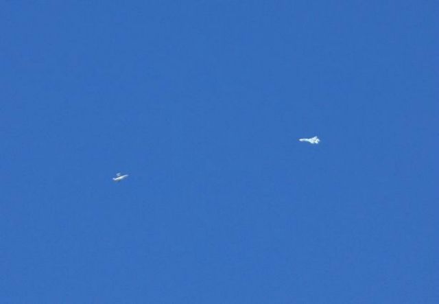 Фотографії зближення двох військових літаків зробив 42-річний авіадиспетчер Філ Дрейк. Чоловік хотів зловити момент тренувань американських військових, однак, він зовсім не очікував побачити винищувач російського виробництва у ролі мішені.