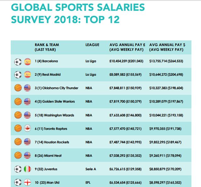 Топ-10 клубів з найвищою середньою зарплатою