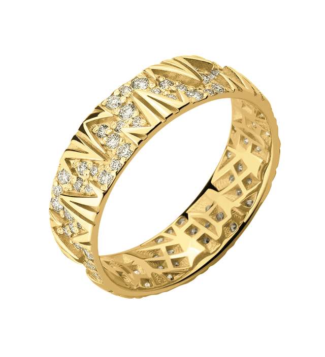 Если же вы ищите что-то более экстравагантное и уникальное, то можете обратить своё внимание на такое кольцо из желтого золота от Diamant: