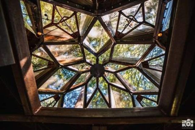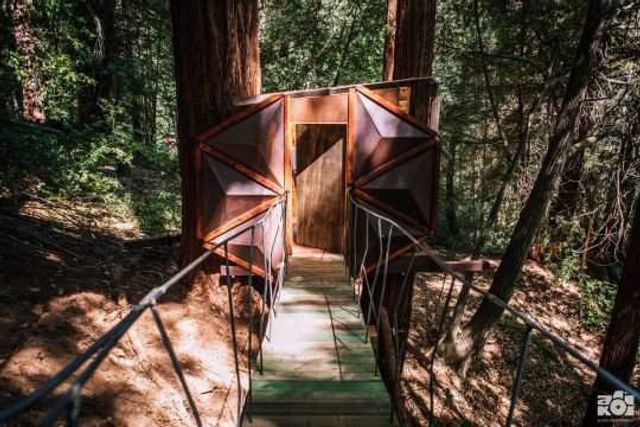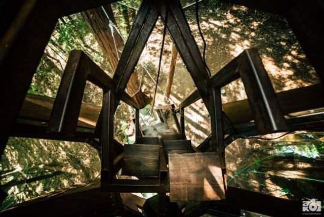 Прозорий будинок на дереві у формі соснової шишки розташований в каліфорнійському лісі Ред-Вуд, США.
