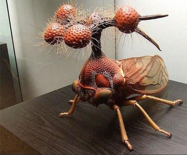Бразильська горбатка. Фото, зображене тут, це модель, створена Альфредом Келлером, німецьким скульптором в 1950-х роках. Але не варто думати, що це все вигадка, бо бразильська горбатка – реально існуюча комаха, причому це найдивніша особина у всьому сімействі горбаток.