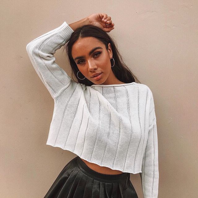 А для модниць з ідеальною фігурою радимо придивитися укорочений светр з високим горлом і гумкою на талії. Носити його можна з широкими джинсами з високою посадкою, а також грубими черевиками або кросівками. Доповніть лук тренчем або теплим пальто і маленьким клатчем.