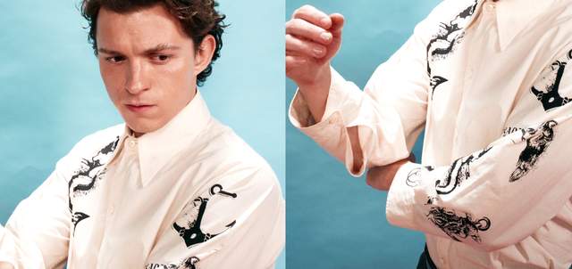 На кадрах Голланд позує на кольоровому фоні у шкіряній куртці червоного кольору, чорній футболці-поло та штанах у клітку, а також у білій сорочці з принтом у морській тематиці та чорному оверсайз-кардигані.