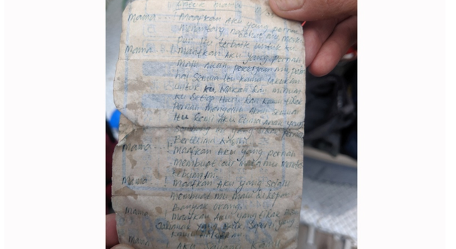 Зрозуміла була тільки дата: листопад 2003 року. А значить, пляшка провела у воді понад 16 років. Дівчина показала послання лінгвістам. Вони визначили, що лист написано індонезійською мовою і є не чим іншим, як вираженими в поетичній формі роздумами про любов сина до матері.