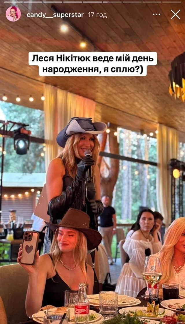 Святкування відбувалося у стилі "Дикого Заходу", тож Нікітюк обрала відповідний образ: шкіряний топ із бахромою, джинсові шорти та широкий ковбойський капелюх.