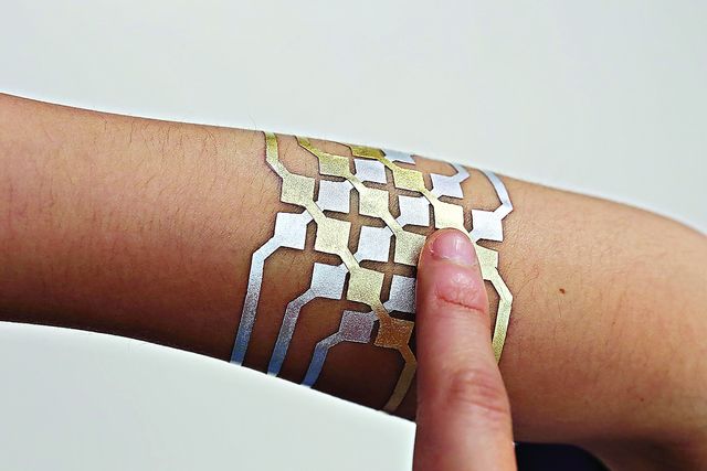 Вчені з китайського університету Цінхуа створили на основі графену штучну кольорову електронну шкіру, яка може функціонувати як натільний електронний пристрій для відстеження стану здоров'я. Як повідомляється, електронна шкіра отримала назву e-skin.