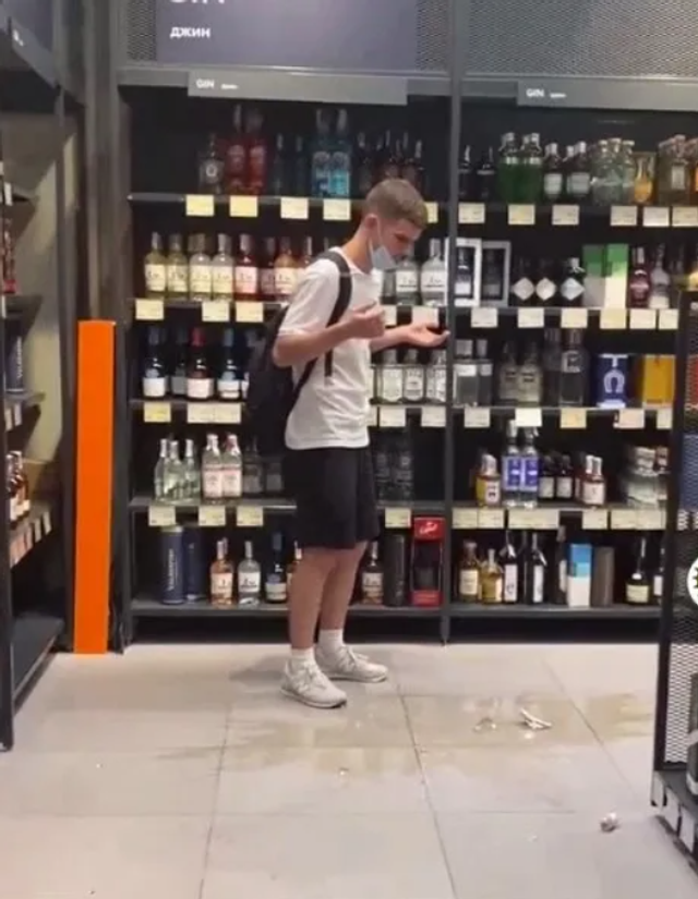 Хлопець повідомив, що тримає в руках елітний алкоголь, а потім розтискає руку. Поруч з киянином був ще один чоловік, який знімав цей ролик.