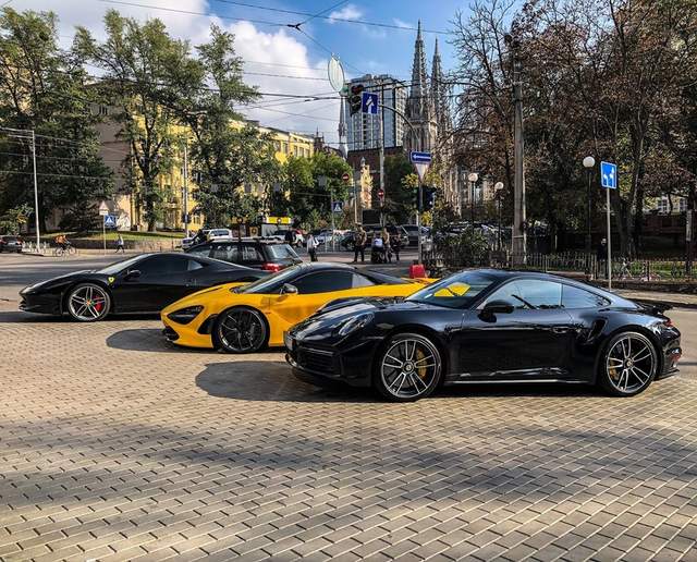 У центрі української столиці на парковці засвітилися круті суперкари. Сумарна вартість трьох автомобілів – майже мільйон доларів.