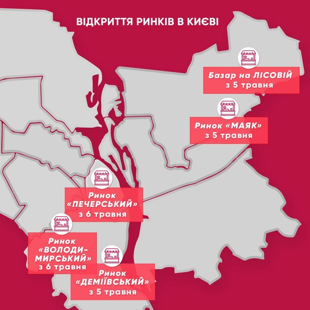 Міський голова Києва Віталій Кличко повідомив, що 5 травня в столиці вже відкрили три ринки, а 6-го числа свою роботу відновлять ще два. Дізнайтесь, про які ж ринки йдеться.