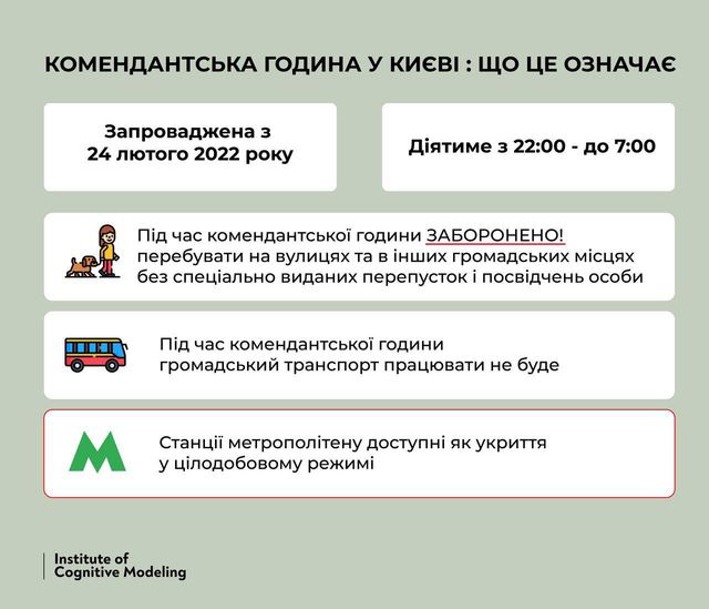 Прохання до всіх киян вчасно повертатися додому. За крайньої потреби пересування містом під час комендантської години, зокрема, працівниками змін підприємств критичної інфраструктури, обов'язково мати при собі документи, що засвідчують особу, – наголосив він.