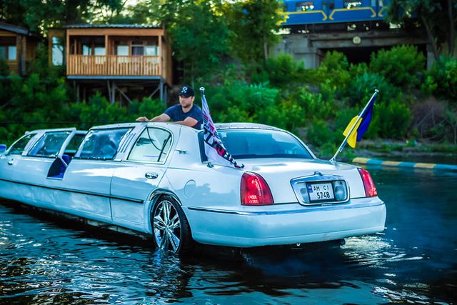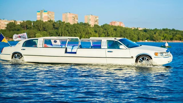 У столиці помітили незвичайний плавзасіб, який курсує по Дніпру – білий лімузин з пасажирами на борту. На сьогодні він не має аналогів у світі.