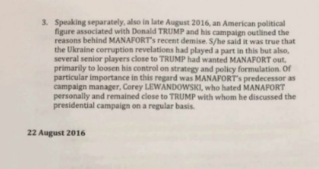 У документі, підготовленому нібито британським розвідником для політичних конкурентів Трампа, є розділ, який присвячений зв'язкам колишнього глави виборчої кампанії Трампа Пола Манафорта з корупційними схемами Януковича.