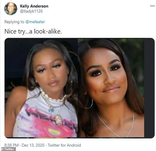Не всі згодні, що на фотографії справді Саша Обама. Ймовірно, це може бути просто двійник дочки Барака Обами. Але прикраси на шиї дуже схожі.