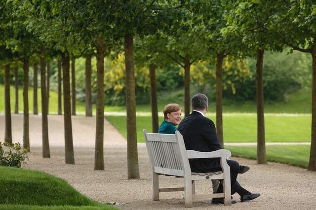 Вперше зустріч з Канцлером відбулася в її заміській урядовій резиденції - замку Месеберг. На фотографіях, викладених в мережі, можна помітити як Порошенко і Меркель гуляють та успіхаються. Надіємося, переговори були плідними.