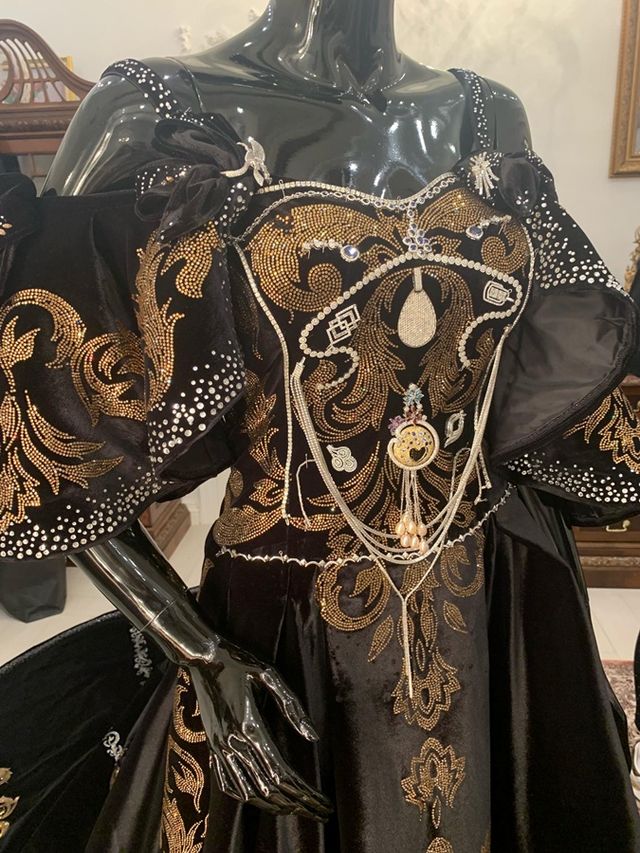 Дизайнером розкішного вбрання є Ірина Марчук, яка використовувала для його створення діаманти у 109.35 карат, камені Swarovski, а сама сукня важить близько 60 кг розшите золотом найвищої проби. Найдорожча сукня в Україні вартістю у пів мільйона доларів увійшла у вітчизняну Книгу рекордів.