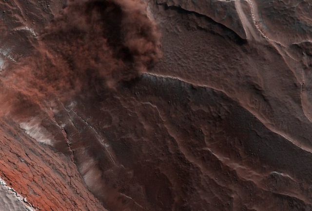 Орбітальний апарат розвідки Марса NASA зафіксував крижану марсіанську лавину і зробив її фотографії.