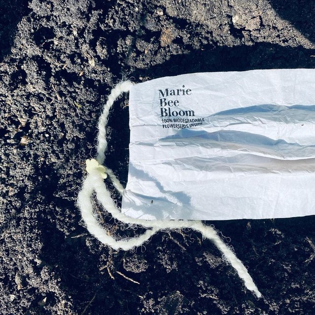 Матеріал для такої маски зроблений з суміші рису, води і натурального крохмалю. Між шарами біорозкладаної тканини Маріанна поклала насіння квітів. І як тільки захисна маска стане непридатною – її потрібно просто змочити водою і вкопати в землю. Коштують такі маски по 3,5 долара за штуку.
