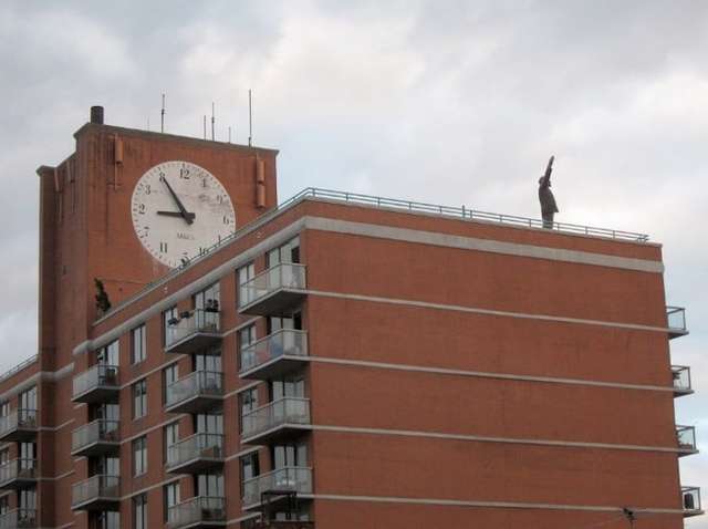 Житловий комплекс, на даху якого встановили скульптуру, охрестили "Червоною площею" ( "Red Square"), оскільки він був побудований у 1989 році, напередодні розпаду СРСР.