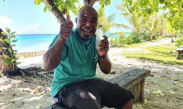 У листопаді на острові Панасеса, що входить у ланцюг Конфліктних Островів Папуа-Нової Гвінеї, фахівець з охорони природи Стівен Амос під час прибирання берега натрапив на пляшку. У ній була жменя рисових зерен, кілька мушель та лист.
