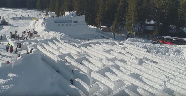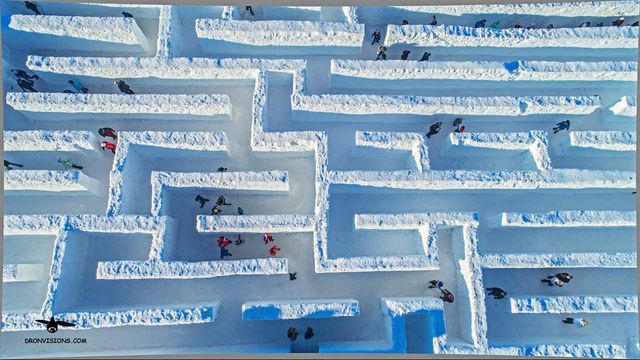 Спробувати свої здібності в орієнтуванні на місцевості величезний лабіринт з льоду і снігу пропонує як дітям, так і дорослим, адже висота його стін становить 2 метри.