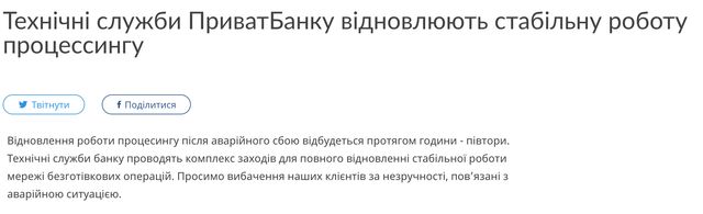 Увечері в п'ятницю 13 вересня виникли проблеми в роботі найбільшого українського банку "ПриватБанк". Зокрема, спостерігалися проблеми в роботі терміналів у супермаркетах і точках роздрібної торгівлі, а також фіксувався збій у роботі додатку "Приват24".