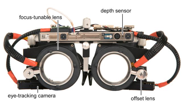 Інженери обладнали окуляри системою автофокусування, що складається з камери глибини і двох камер для відстеження положення очей. Камера у верхній частині окулярів в реальному часі створює карту глибини, яка буде показувати відстань до різних об'єктів. Одночасно з цим датчики руху очей збирають дані про направлення погляду, після чого алгоритм накладає координати точки погляду на карту глибини.