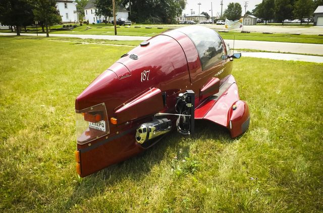 Незвичайна машина є дітищем інженерів американської компанії Owosso Motor Car. Подібні автоцикли були популярні у середині 80-х років минулого століття. В основі транспортного засобу лежить сталева трубчаста рама, на якій закріплений скловолоконний аеродинамічний кузов. Доступ у кабіну, в якій можуть розміститися дві людини, здійснюється за допомогою розсувного скла.