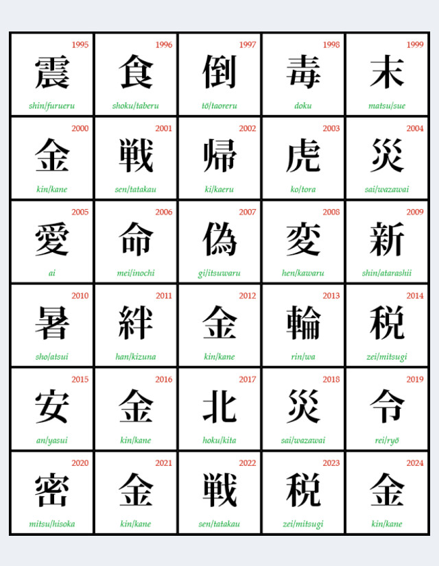Цей ієрогліф набрав 12 148 голосів. Голосування проводили через поштові картки, онлайн і в книгарнях.