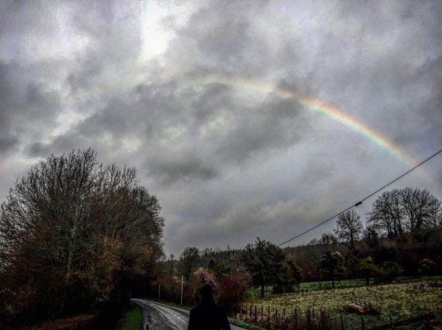 "Раптом з-під чорнючих хмар виглянуло сонце, буквально на одну хвилину. І через мою дорогу виросла веселка. Така стрімка, що поки намалювалася друга нога, перша нога вже зникла. Я ледве встигла сфотографувати. Ну от треба ж було пройти через цю зливу, щоб побачити таку магічну красу, та ще й 1 січня. Все буде в нас добре, подумала я собі, але не без перешкод. Вірю в хороші знаки", – написала вона, додавши фото.