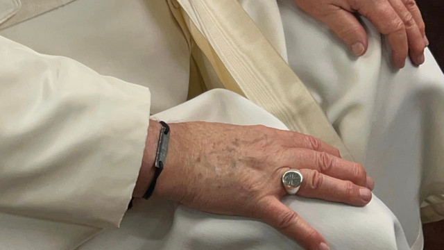 Папа Франциск поцілував прапор України та одягнув браслет з Азовсталі.