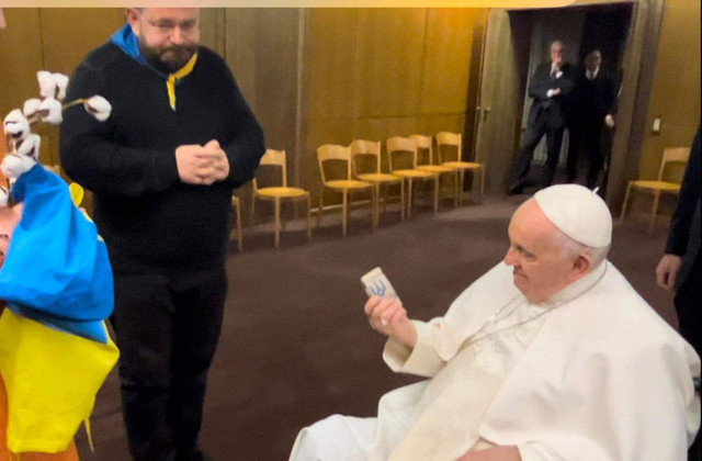 Обидва символи виконують свою місію: вкотре нагадують про війну, яку розпочала росія в Україні. Разом з подарунками йому передали список полонених захисників Маріуполя та полонених жінок Маріуполя, в тому числі цивільних. Папу попросили долучити голос Ватикану до їх негайного звільнення.
