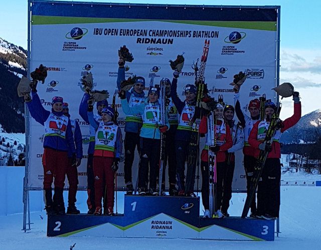 Збірна України з біатлону у складі Юлії Журавок, Ірини Варвинець, Артема Прими та Дмитра Підручного завоювала золоту медаль чемпіонату Європи в змішаній естафеті.