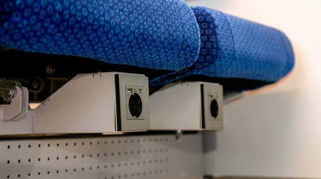 У вагоні встановлені сучасні м'які крісла, а також обладнані розетками та USB-роз'ємами для зарядки гаджетів.