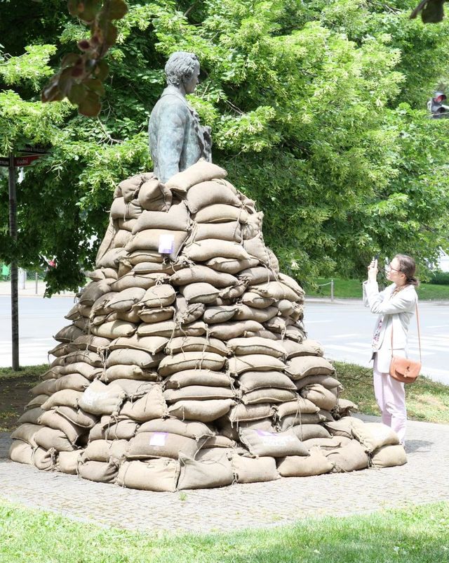 У Празі містяни обклали мішками з піском пам'ятник Тарасу Шевченку. Таким чином вони "захистили" його на знак солідарності з Україною.